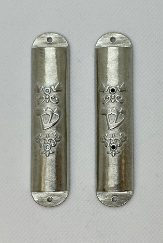 Brushed Silver Rhinestone Mezuzah (kosher scroll not included)