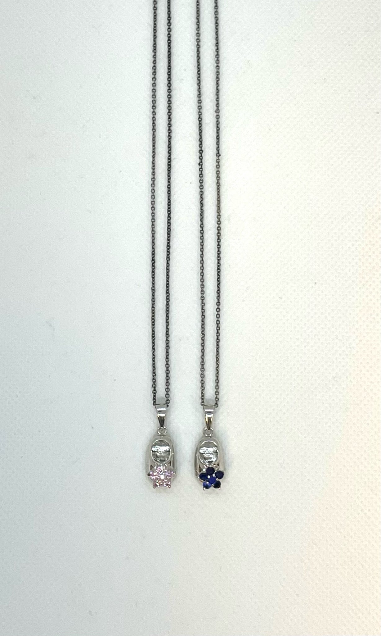 Shoe Necklace available in Blue or Pink with 9 inch chain