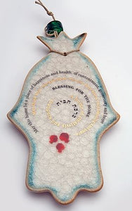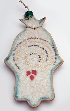 Ceramic hamsa-shaped blessing for the home.