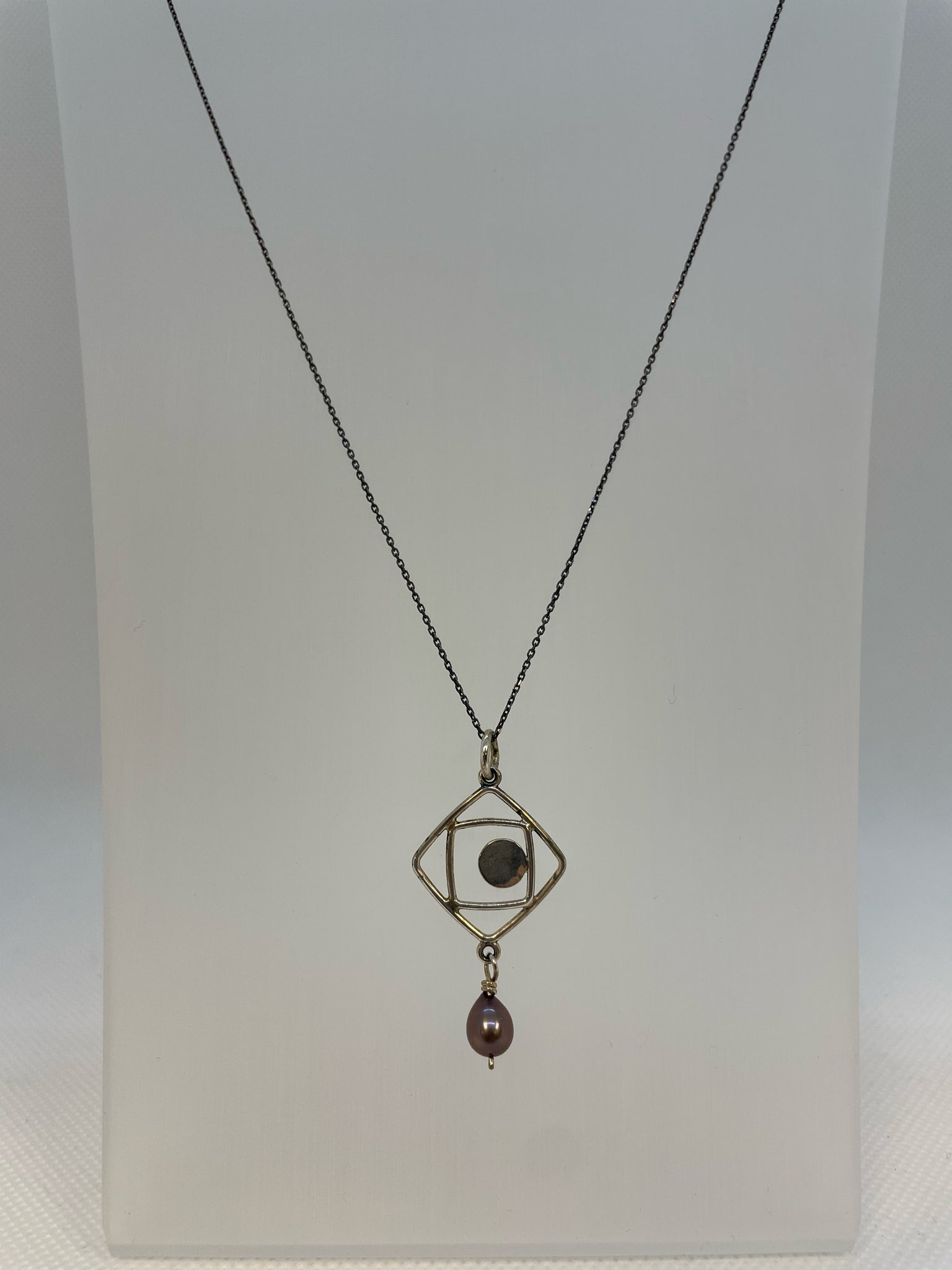 Joan Z Horn double square necklace with star and bead, includes pendant and 18" chain.